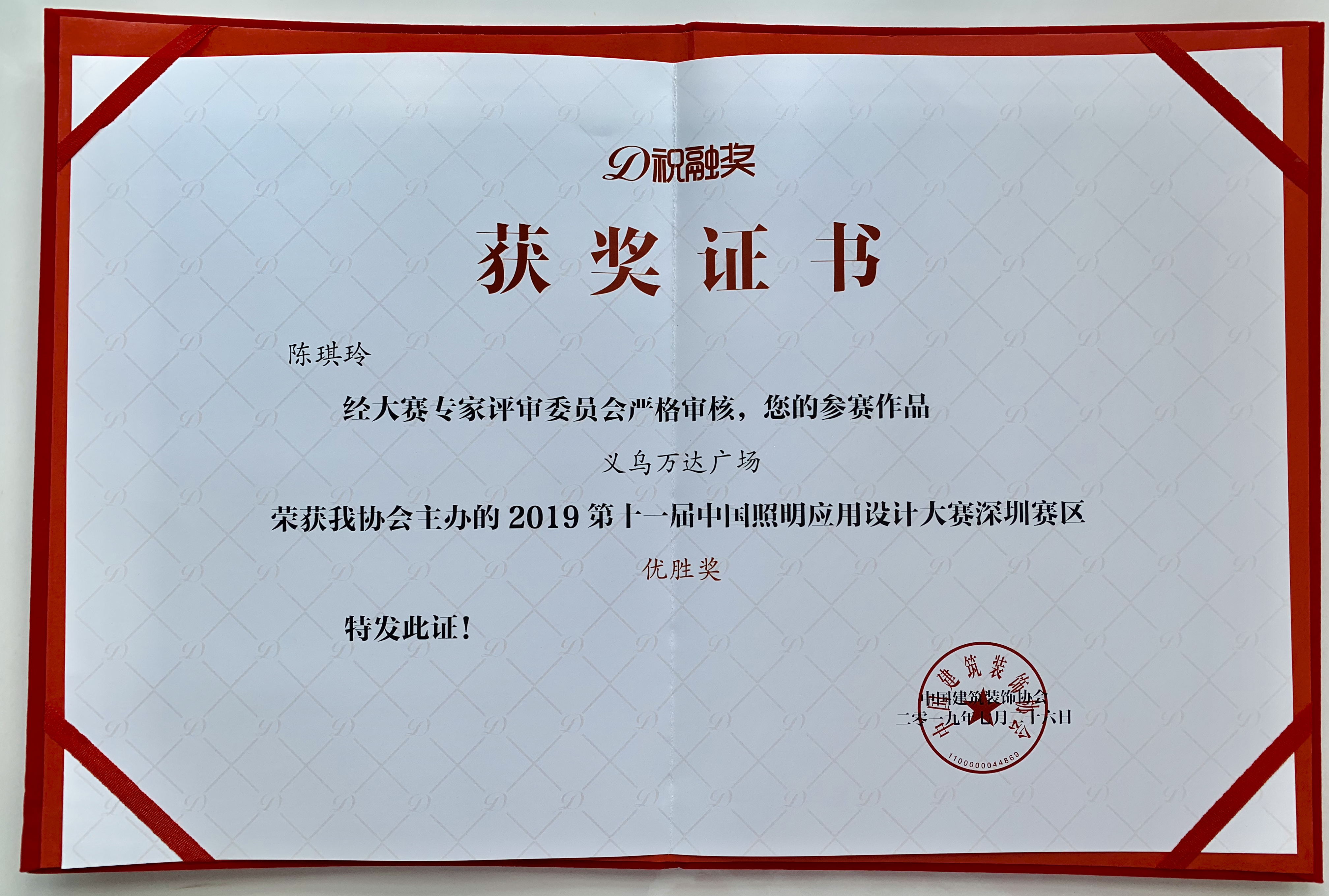 在“樂的美之夜·頒獎典禮”上,第十一屆祝融獎深圳賽區獲獎名單盛大揭曉,在場設計師一同見證深圳照明設計的高光時刻。最終,深圳市一元照明設計工作室斬獲第十一屆祝融獎深圳賽區優勝獎。